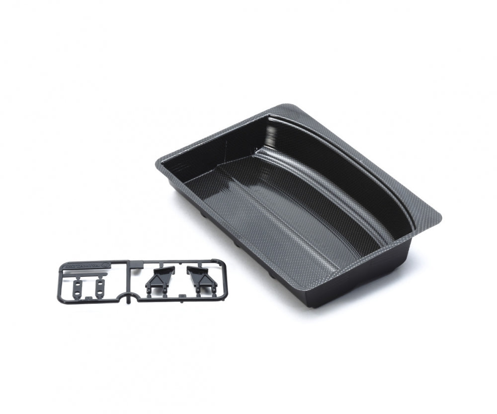 This wing set is made of 0.7mm-thick polycarbonate with a carbon pattern. The wings are compatible with any Tamiya touring or sports car body that has space available to make wing attachment holes. Whether it's to add a stylish look to your vehicle or to raise your downforce on a tough track, this item is for you! It includes 2 newly-designed wings.