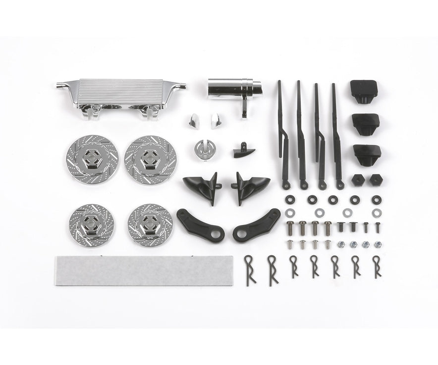 Dieses Set enthält Teile zur Darstellung von Front-/Heckwischern, Seitenspiegel, Schalldämpfer, Ladeluftkühler und Bremsscheiben, um die Karosserie Ihres 1/10 RC-Tourenwagens zu verschönern und zu detaillieren.