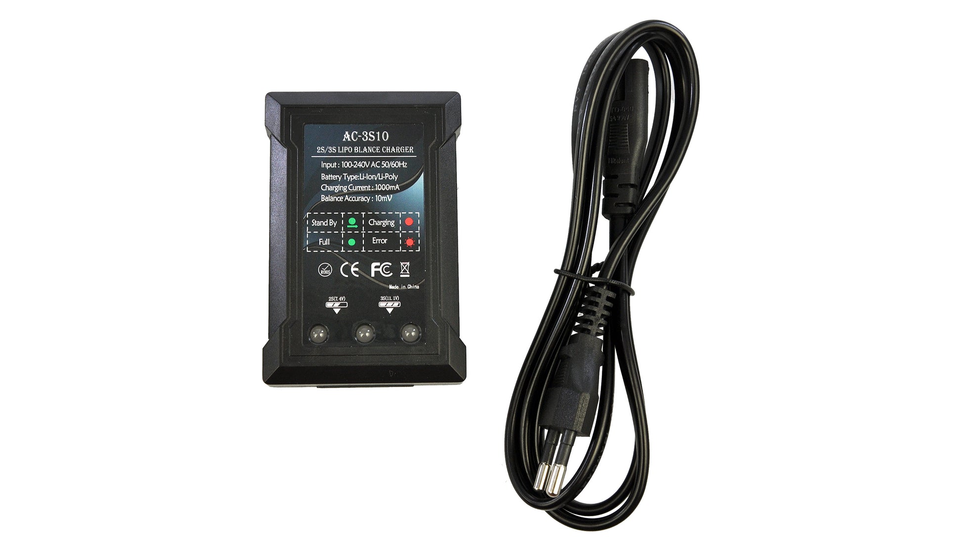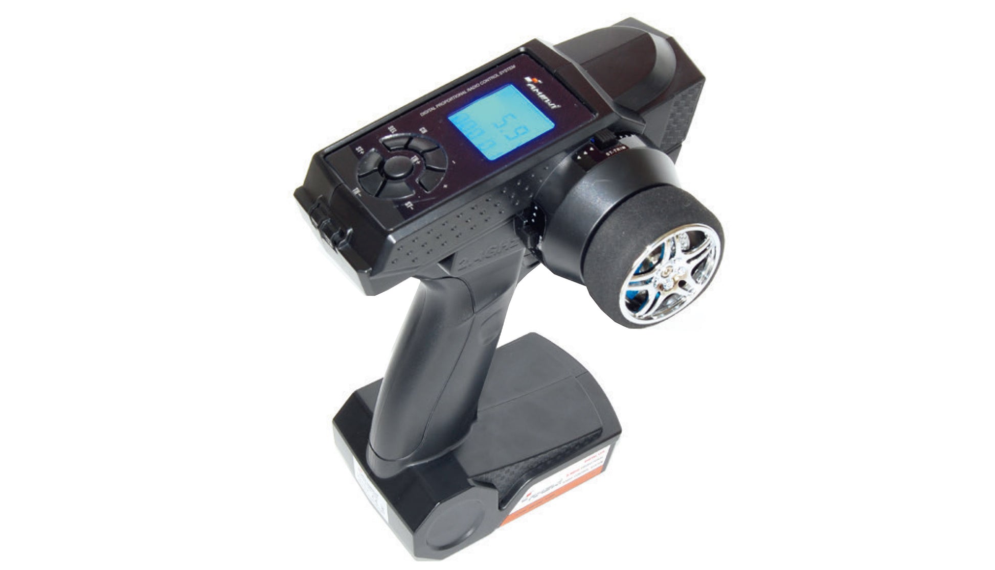 Der starke Akkupack mit 7,4V 4000mAh LiPo 25C ist bereits im Lieferumfang enthalten und wird mit dem beiliegendem 220V LiPo Balance Charger (1A Ladestrom) geladen. Dämpferbrücken, Getriebeverstärkungen und Achsschenkel sind aus hochwertigem in Blau eloxiertem Aluminium hergestellt. Dem Set liegt eine hochwertige, programmierbare 4-Kanal 2,4GHz Computer-Fernbedienung bei, die ein feinfühliges und präzises Steuergefühl bei einer Reichweite von bis zu 150m vermittelt. Für eine optionale Beleuchtung o.ä. bietet der Sender zwei zusätzlich schaltbare Kanäle, Gas und Lenkung sind über den Sender in der Intensität einstellbar (Geschwindigkeit und Lenkeinschlag). Ebenfalls lassen sich über den Sender z.B. Dual raten, Expo und Fahrzustände programmieren. Weiter verfügt der Sender über zwei Trimmpotis für Gas und Lenkung.