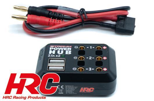 Dieser kompakte Multiport-Verteiler verfügt über drei Gleichstromausgänge, die sowohl Bananenstecker als auch Krokodilklemmen unterstützen. Zwei 5V/2.1A USB-Anschlüsse unterstützen Smartphones oder andere Geräte. Das DC-Netzkabel ist austauschbar.