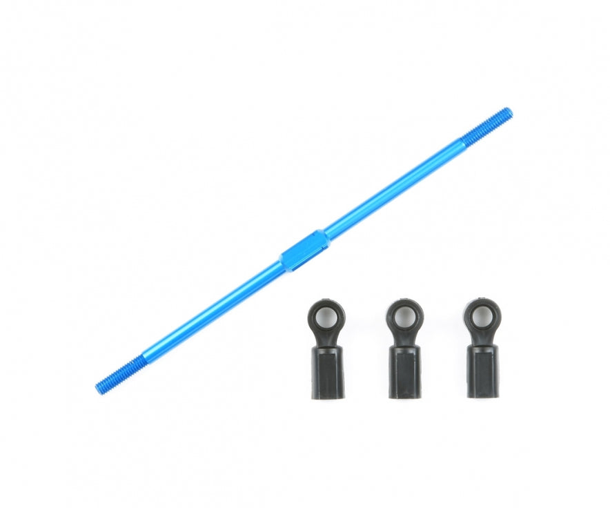 Wird anstelle der standardmäßigen 3 x 89-mm-Doppelschraubenwelle des Kits verwendet. Eine subtile Längenanpassung ist durch einfaches Drehen des Vierkantteils in der Mitte möglich, ohne die Lenkstange zu entfernen. Aus leichtem Aluminium mit blau eloxiertem Finish.