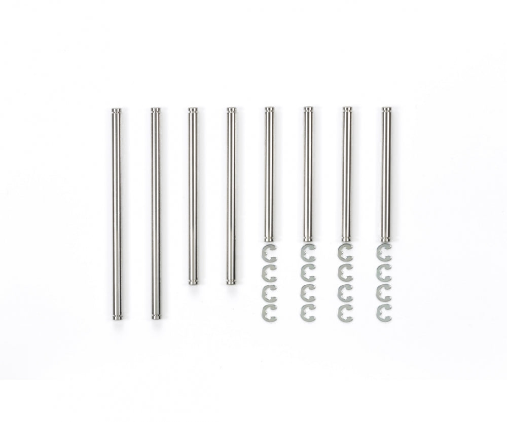 This set contains stainless steel suspension shafts to attach both front and rear arms to the M-05 Ver.II chassis. They provide greater precision and durability. E-ring parts for attachment are included.