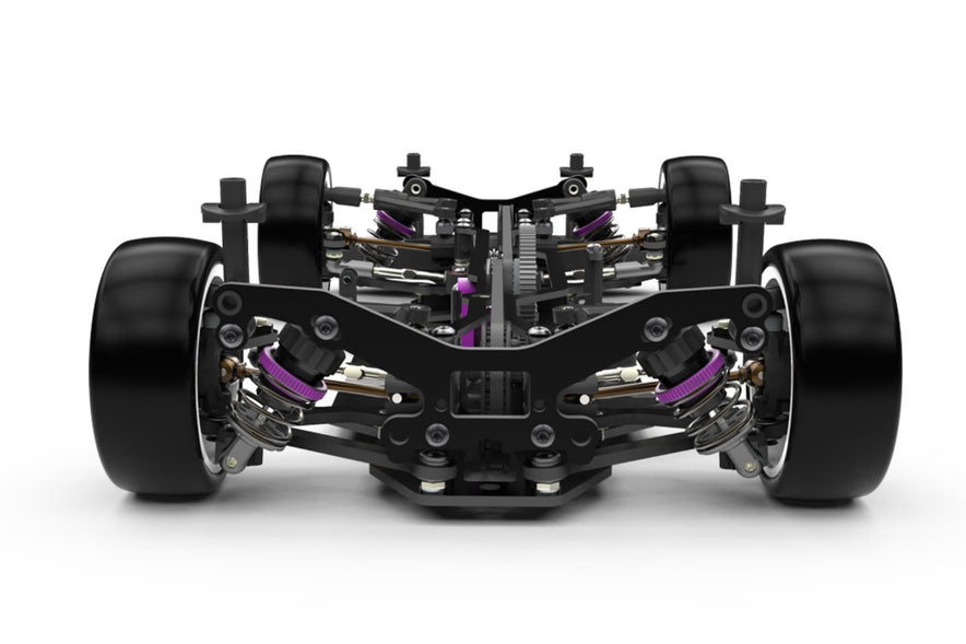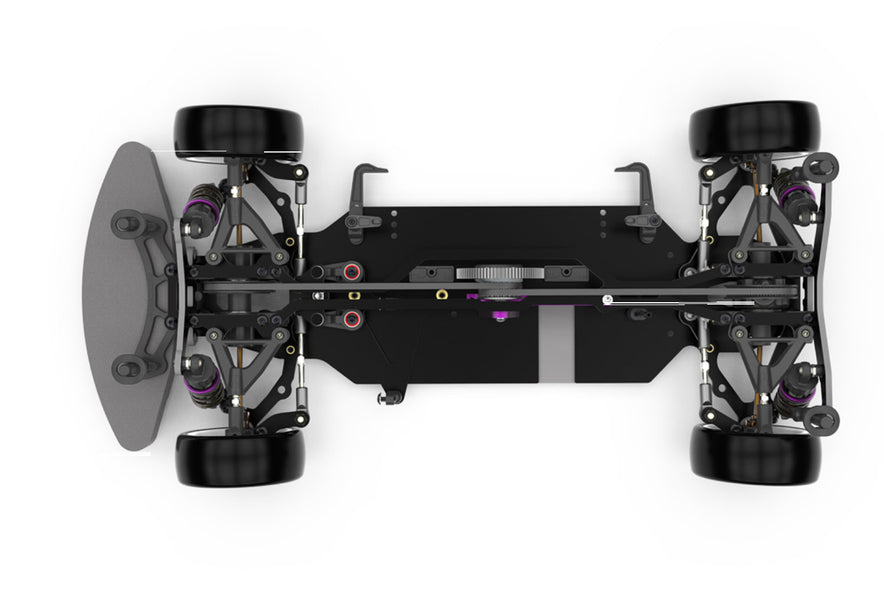 The Vibe TC is durable and simple to maintain. Alloy shocks with purple anodised adjusters, UJ driveshaft’s, purple alloy transmission and layshaft mounts feature as standard equipment in the kit. Strong and flexible S2 chassis and top deck makes the Vibe TC easy to drive, and tuneable for whatever track you decide to race on.