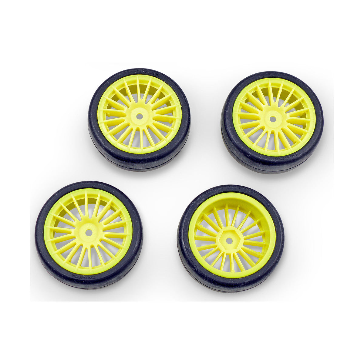 Tamiya Euro-Cup Kompletträder Slick 24mm mit Einlage schwarz (hart) auf Speichenfelge neon-gelb (4)