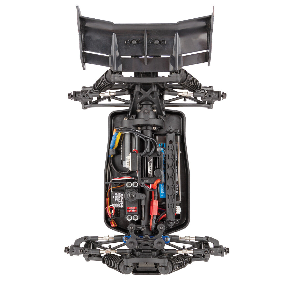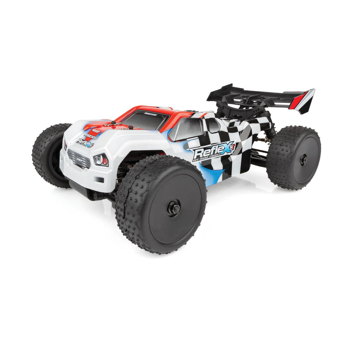 Team Associateds neuer Reflex 14T 1:14 4WD Ready-to-Run Truggy kommt serienmäßig vormontiert, mit einem Reedy Power Brushless-Motor und -Fahrtregler, einem High-Torque-Lenkservo sowie einer 2,4GHz-Fernlenkanlage. Damit stehen Ihnen jede Menge Power und 4WD-Kontrolle zur Verfügung - und das ohne langwierige Bauzeit! Zusätzlich lassen sich diverse Fahrwerksparameter nach Ihren Wünschen einstellen, um auf jedem Untergrund die optimale Performance zu erzielen. Serienmäßige High-Performance-Teile wir drei abgedichtete Kegelraddifferentiale, eine Aluminium-Lenkungsplatte sowie eine leichte Aluminium-Mittelwelle runden das Paket ab. Alles was Sie noch benötigen ist ein passender Fahrakku und schon können Sie Offroad Action im Westentaschenformat erleben!