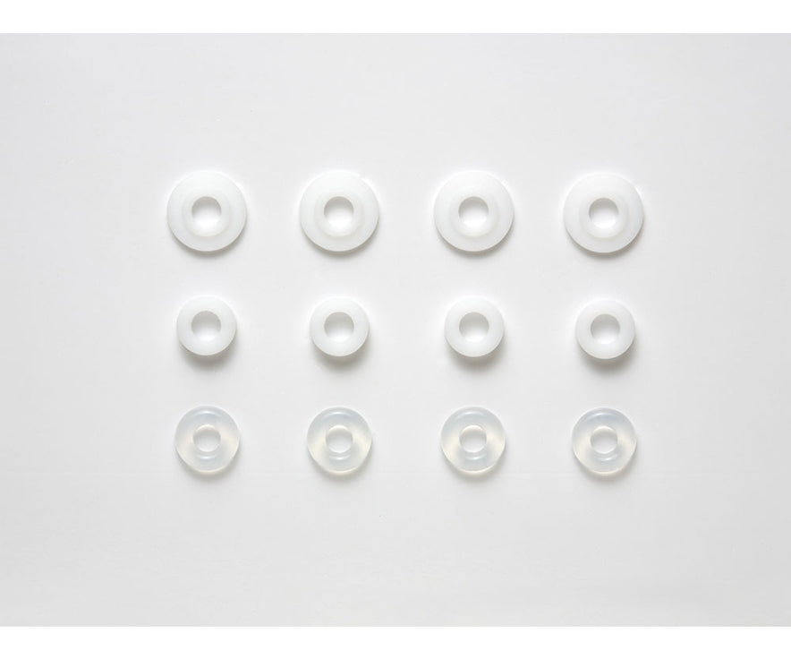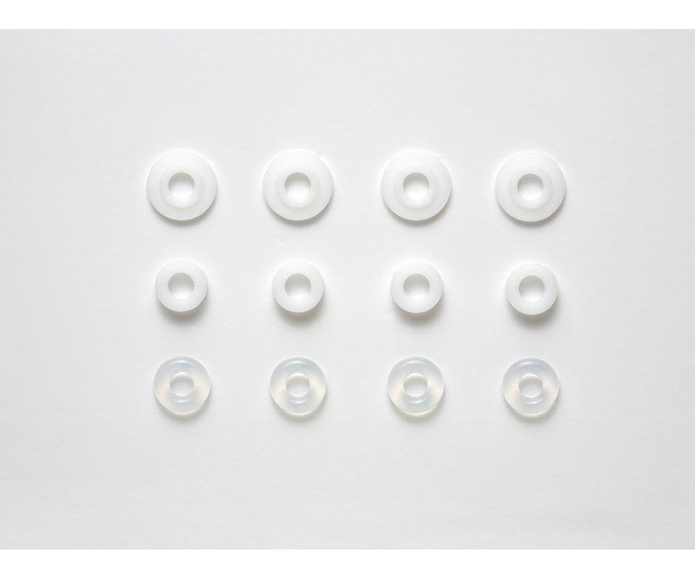 Dieses TRF-Stoßdämpfer-Umbaukit enthält durchsichtige Gummi-O-Ringe und Flourine-Stoßstangenführungen. Dieses Umbaukit funktioniert mit allen Tamiya TRF Touring Car Dämpfern.